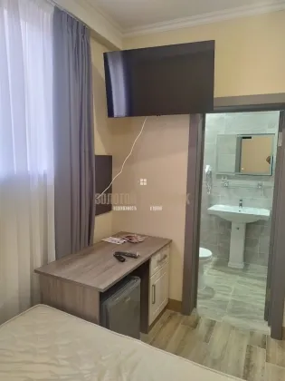 продается гараж на берегу моря, до которого 5 метров. комнаты с удобствами (9 комнат) общая кухня, парковка (на 4 машины) мебель остается. вода свет центральные. септик. в каждом номере телевизор, сплит, чайник, фен, холодильник